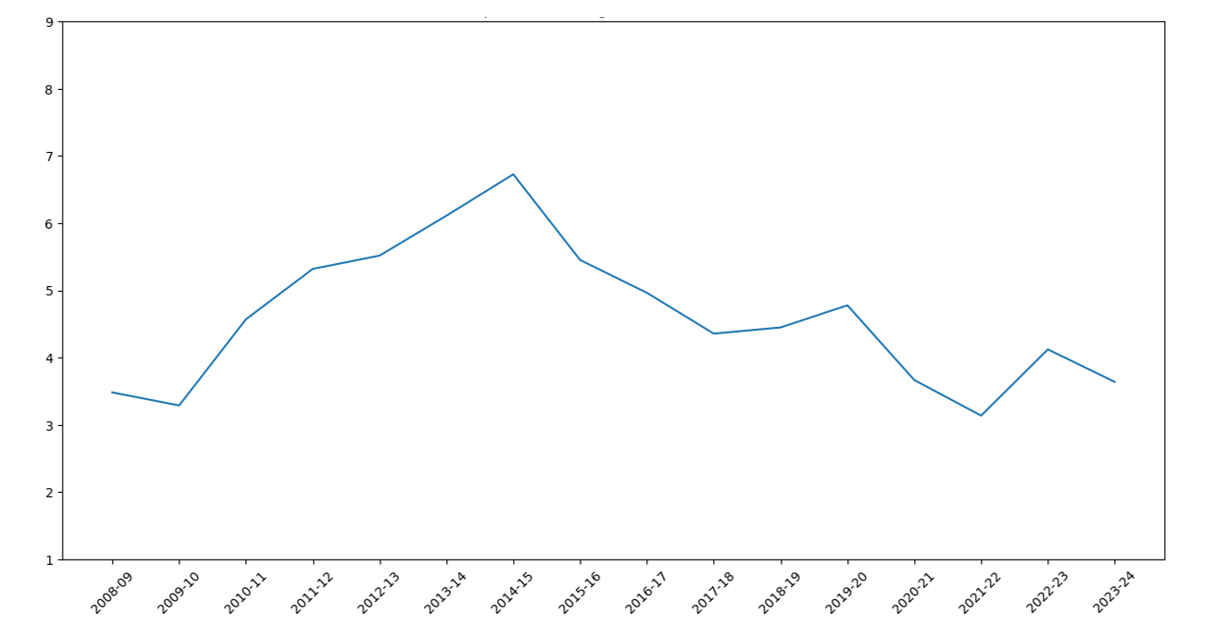 आकृति-9. मनरेगा व्यय में प्रशासनिक व्यय का हिस्सा (%)