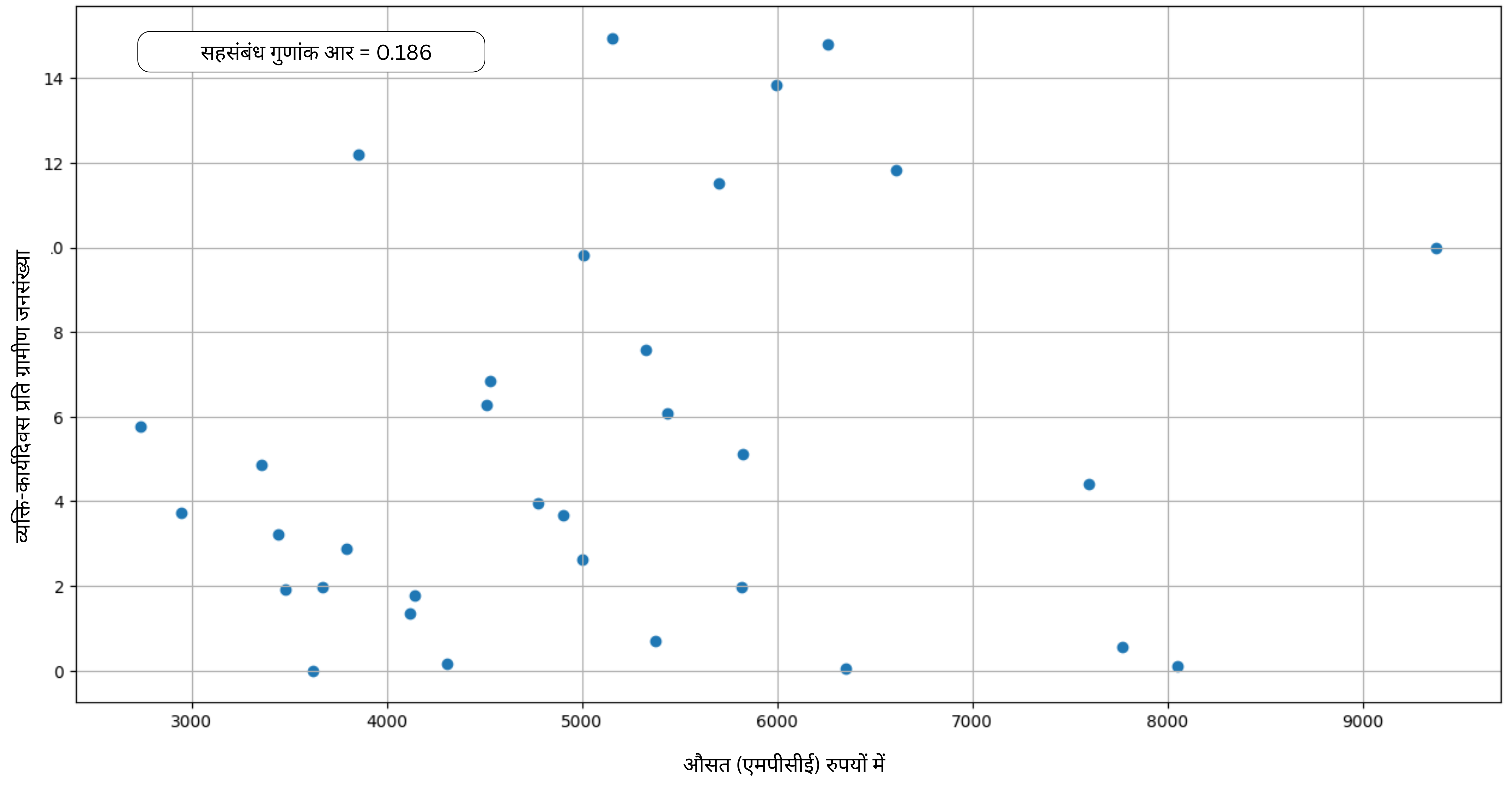 आकृति-3. औसत एमपीसीई और प्रति व्यक्ति मनरेगा रोज़गार (ग्रामीण, 2023-24)