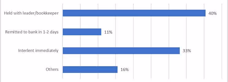 Lastly, access to timely availability of credit is a prerequisite for farmers to take up cost-intensive HVA. One-sixth of the surveyed households had an outstanding loan or had paid off a loan during the 12-month period prior to the survey. Only one-third of these loans are being utilised for farm assets. Half of the households avail loans from SHGs, highlighting the maturity of community institution platforms. However, the average prescribed amount of savings per member are modest, and in only one-third of instances, savings are loaned out immediately.