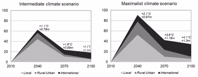 Figure 2. Number and type of climate migrants (million per 30-year window)