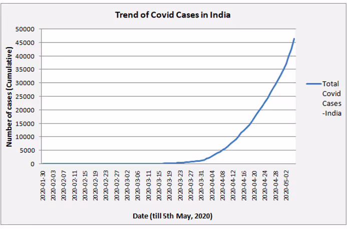 Figure 2. Trend of total confirmed cases of Covid-19 in India (30 January-5 May 2020)