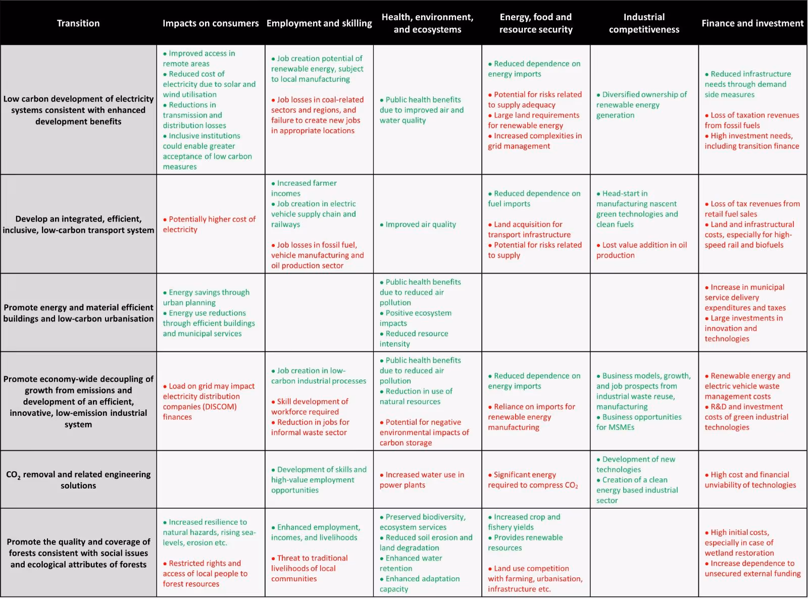 Table 1. Development opportunities (green) and challenges (red) associated with India’s envisioned low-emission development transitions