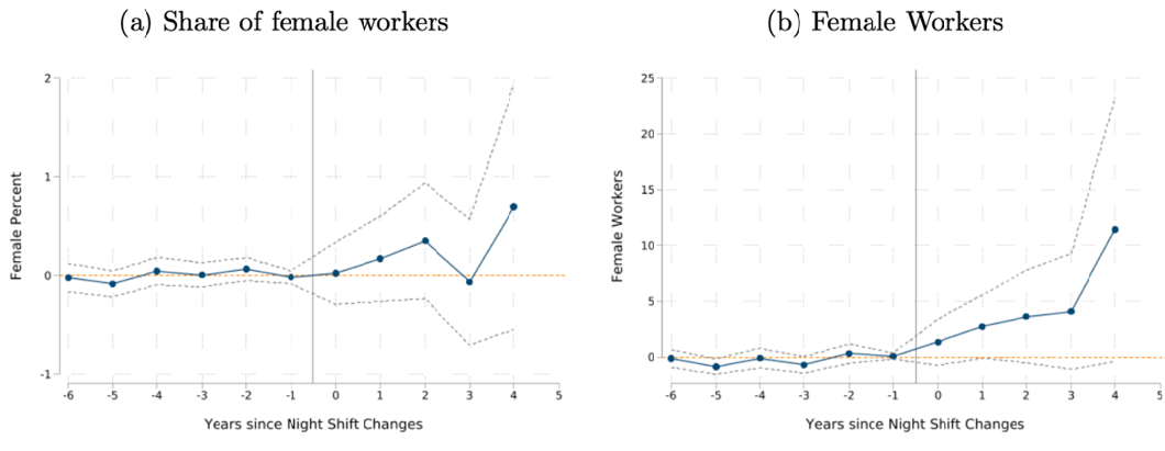 वर्ष 2014 और 2017 के बीच, सात भारतीय राज्यों ने अपने नियमों में बदलाव करके महिलाओं को फैक्ट्रियों में नाइट शिफ्ट में काम करने की इजाज़त दी और शर्त रखी कि मालिक ऐसी महिलाओं के लिए अच्छी सुविधाएँ देंगे। यह लेख इस बात की ओर इशारा करता है कि लैंगिक आधार पर भेदभाव वाली रोज़गार पाबंदियों को हटाने से महिलाओं के रोज़गार में वृद्धि हुई, जबकि पुरुषों के रोज़गार पर इसका कोई बुरा असर नहीं पड़ा। हालांकि, इसका फ़ायदा लगभग पूरी तरह से बड़ी कम्पनियों को ही मिला।