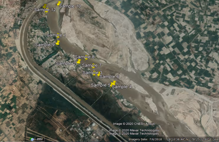 Figure 2. Boat ride route along the Narora site in Uttar Pradesh, with sample collection points