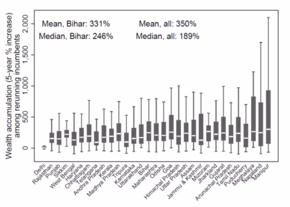 Figure 1. Wealth accumulation rates among state legislators in Indian states