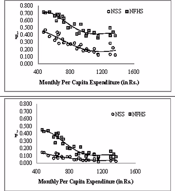 Figure 3. Relation between multi-dimensional poverty and income/ expenditure (NSS-61 in 2004-2005 and NFHS-3 in 2005-2006)
