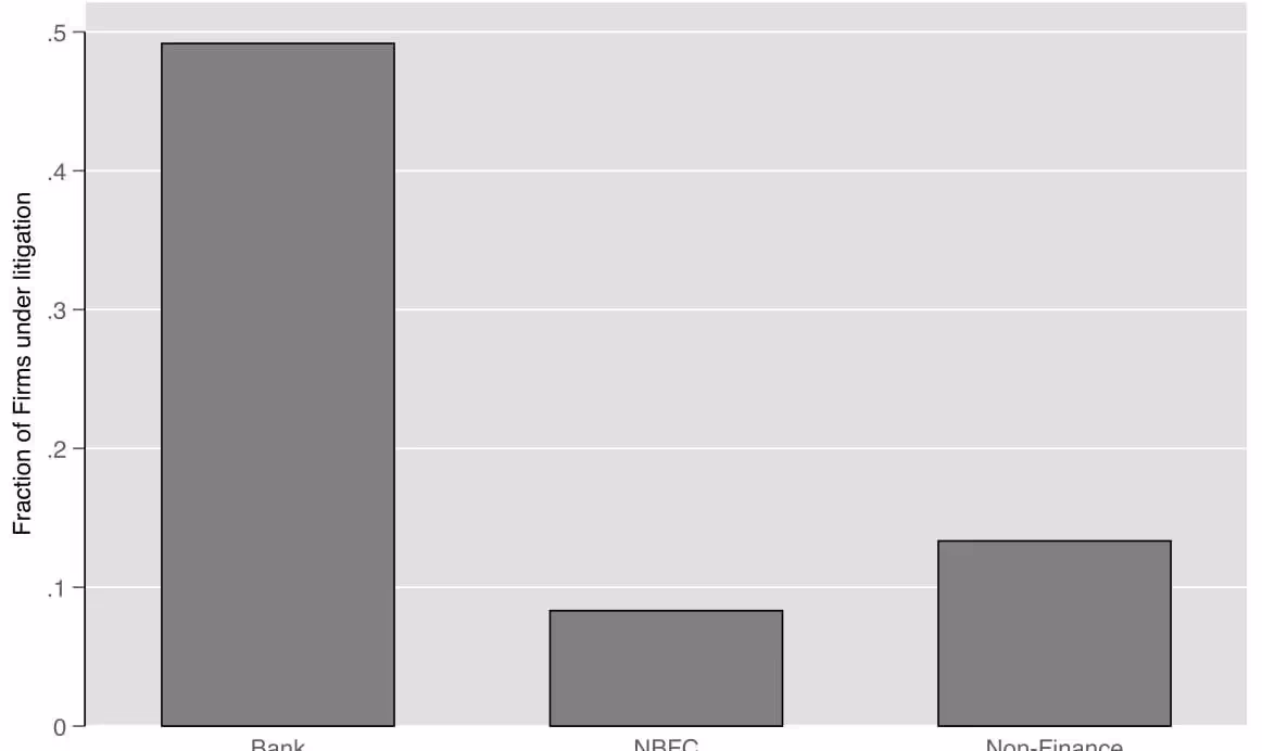 Note: The y-axis presents the fraction of firms by sector in Prowess dataset that are engaged in a trial in the court sample. NBFC refers to non-banking financial companies.