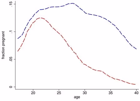 Figure 1a. Proportion of women who are pregnant women by age, in India and sub-Saharan Africa
