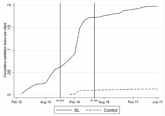 Figure 1. Sanitation loan uptake over time, by treatment arm