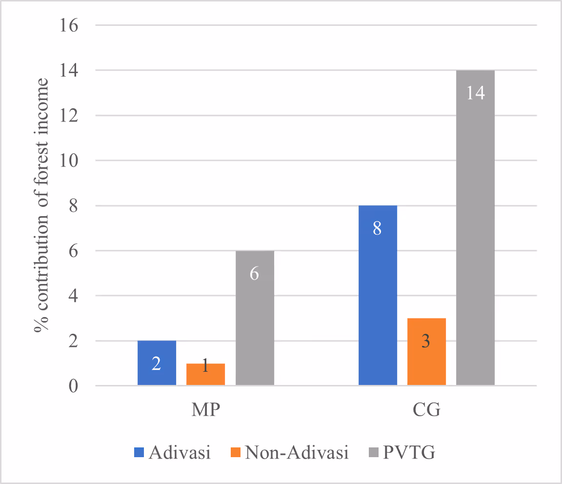 Livelihoods and income: More than 60% of the Adivasi households in MP, 90% in Chhattisgarh and almost all PVTG households in both states report depending on forest products. The majority collect fuelwood, with 98% of households in both states utilising it for personal consumption.