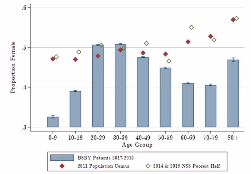 पिछले 15 वर्षों में भारत की केंद्र सरकार और कई राज्य सरकारों ने ऐसे स्वास्थ्य बीमा कार्यक्रमों को लागू किए हैं जो कम आय वाले परिवारों को सार्वजनिक और सूचीबद्ध निजी अस्पतालों में मुफ्त स्वास्थ्य सेवा प्राप्त करने का अधिकार प्रदान करते हैं। स्वास्थ्य सेवाओं की समान रूप से उपलब्धता और सार्वभौमिक स्वास्थ्य कवरेज इन कार्यक्रमों के स्पष्ट लक्ष्य हैं। हम अपने हालिया शोध (डुपास और जैन 2021) में, 2015 में राजस्थान राज्य में आरंभ की गई भामाशाह स्वास्थ्य बीमा योजना (बीएसबीवाई)1, जिसकी डिजाइन राष्ट्रीय प्रधानमंत्री जन आरोग्य योजना (पीएमजेएवाई)2 के समान है, में लैंगिक समानता का अध्ययन करते हैं।