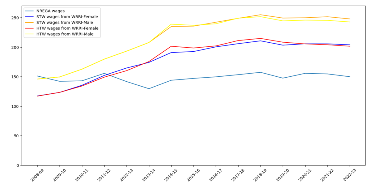 20. In many states, MNREGA wages have also fallen behind minimum agricultural wages (Tamang 2025). The legality of paying less than that to MNREGA workers has been strongly contested (Central Employment Guarantee Council, 2010).