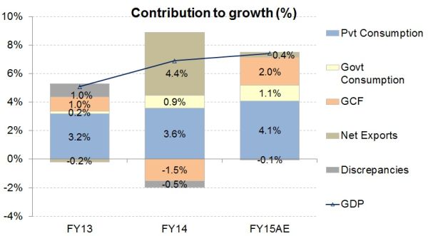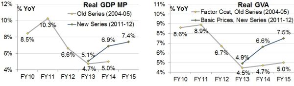 The most important takeaway from this interpretation is as follows: Value added has been the source of the high GDP growth over the past three years, with falling commodities prices and cost-rationalisation driven efficiency gains the main drivers; this now might be coming to an end. In the near term, till growth (and corporate pricing power) increases, GDP growth might start reverting to the volume-oriented growth we analysts are more comfortable with. In other words, FY16 growth might not be much higher than the estimated 7.3% GDP growth in FY15.