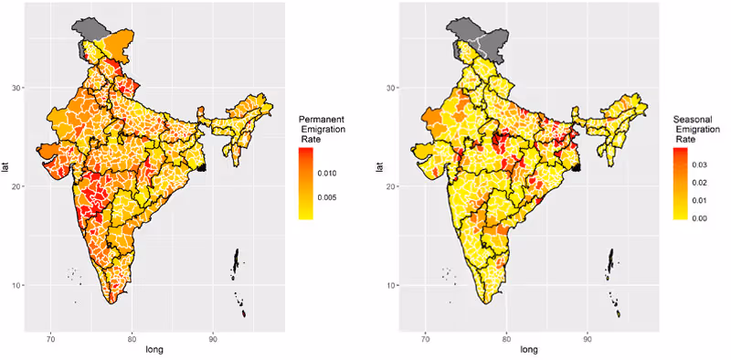 To know the districts permanent migrants will return to, I use Census 2011 combined with Census 2001. For seasonal migrants, I use NSS Employment Survey 2007-087.