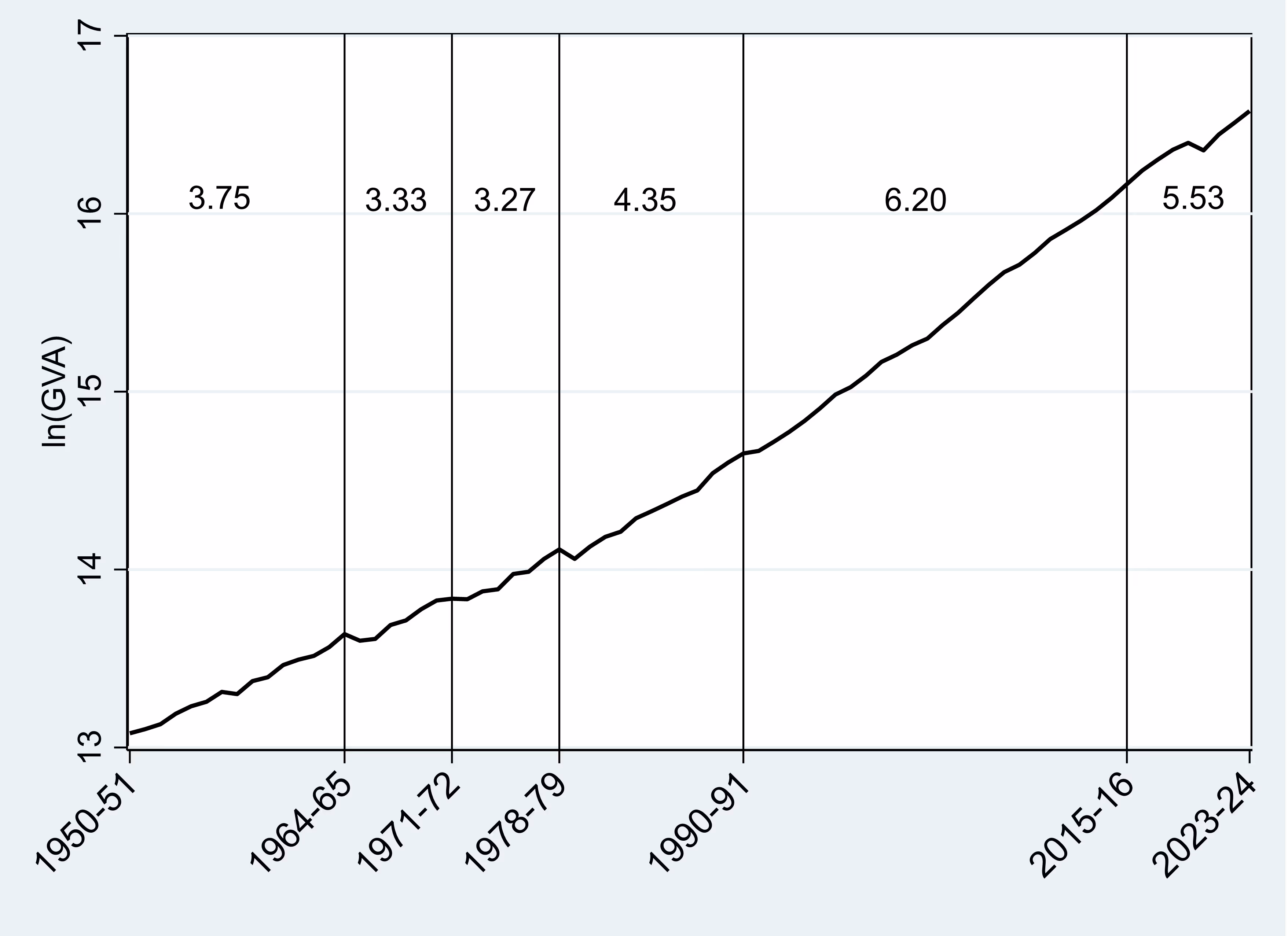 Figure 2. Growth regimes, 1950-51 to 2023-24
