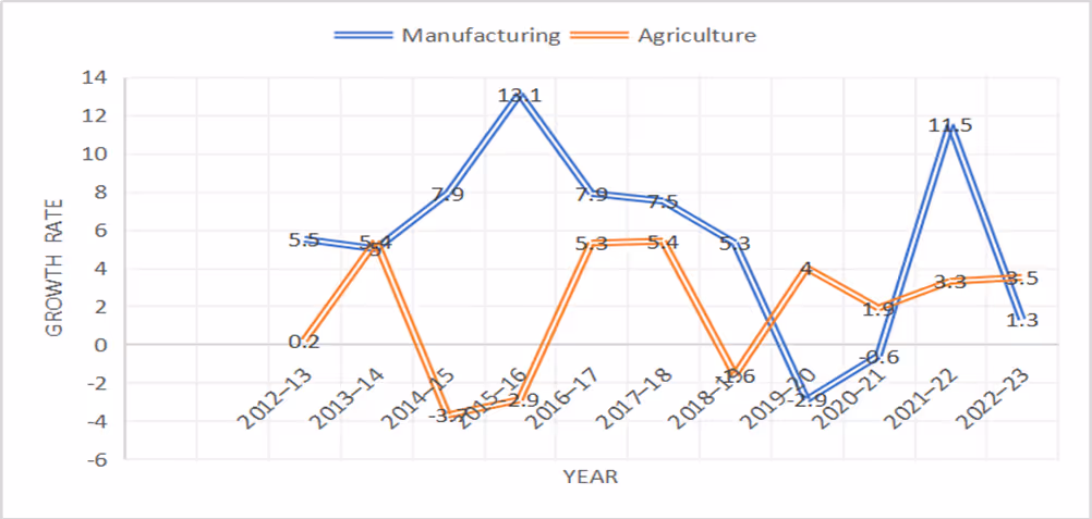 Figure 3. ’Growth of manufacturing and agriculture after ‘Make in India’