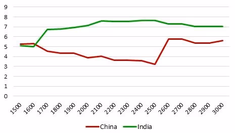 Another practical difficulty to consider stems from the relative prosperity of China and India at earlier stages in their history. For example, according to data from the Maddison Project, China’s GDP per capita exceeded US$1,000 in constant PPP terms for the first time in 1936, then again in 1953, and several more times before the beginning of reforms. India was above that threshold during the 17th and 18th centuries, and after a period of relative decline, it crossed it again in 1885.