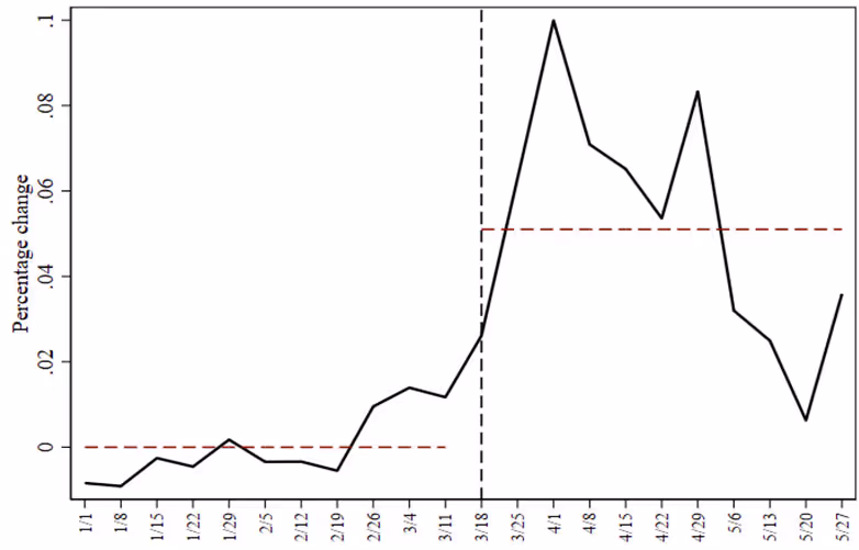 Finally, we find that job seekers with less education were adversely affected as well. By the end of May, the fraction of jobs requiring a graduate degree increased by 9.2%. Around 60% of this effect can be explained by firms becoming more stringent within occupation after the lockdown. This resonates strongly with other contexts, such as how firms responded to the Great recession in the United States (Hershbein et al. 2018).