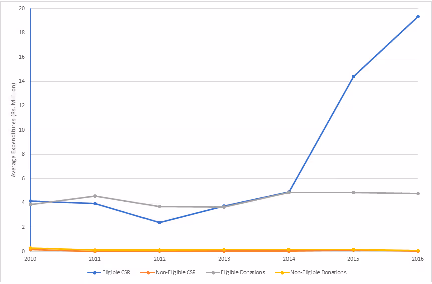 Figure 2: Average CSR expenditure and donations among eligible and non-eligible firms