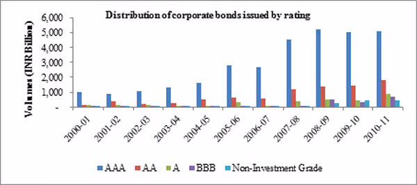 Development of the domestic corporate debt market in India is thwarted by a number of factors, the prominent ones being low primary issuance of corporate bonds leading to illiquidity in the secondary market, narrow investor base, high costs of issuance, lack of debt market accessibility to small and medium enterprises, dearth of a well-functioning derivatives market that could have absorbed risks emanating from interest rate fluctuations and default possibilities, excessive regulatory restrictions on the investment mandate of financial institutions, large fiscal deficit, high interest rates and the dominance of issuances through private placements and AAA2 rated bonds which in turn also prevent retail participation and aggravate the dependence on bank financing.