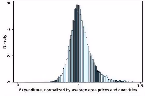 Figure 2. Distribution of the cost of the average household's bundle of goods