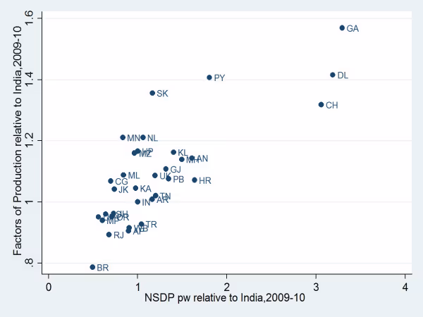 Figure 3. Factors of production and Net State Domestic Product (NSDP) per worker, 2009-2010
