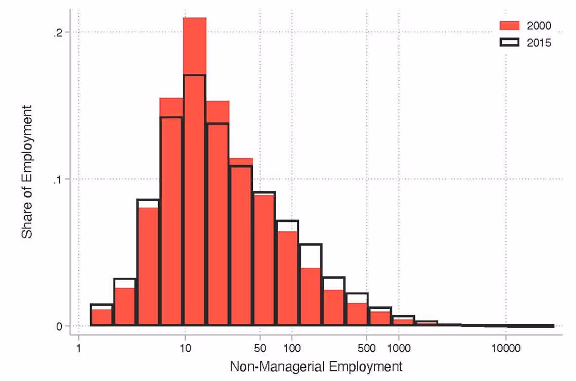 Figure 1. Firm size distribution, 2000 versus 2015