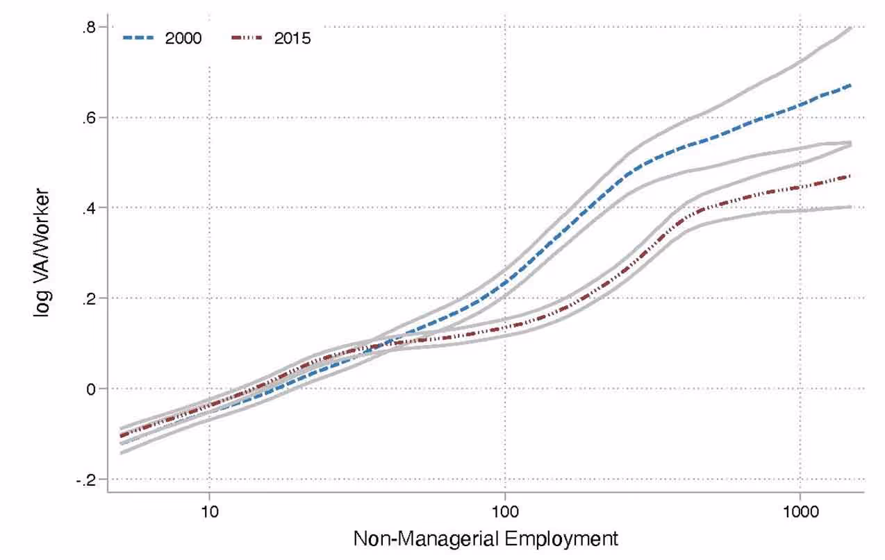 Figure 2. Value added per worker by size, 2000 versus 2015