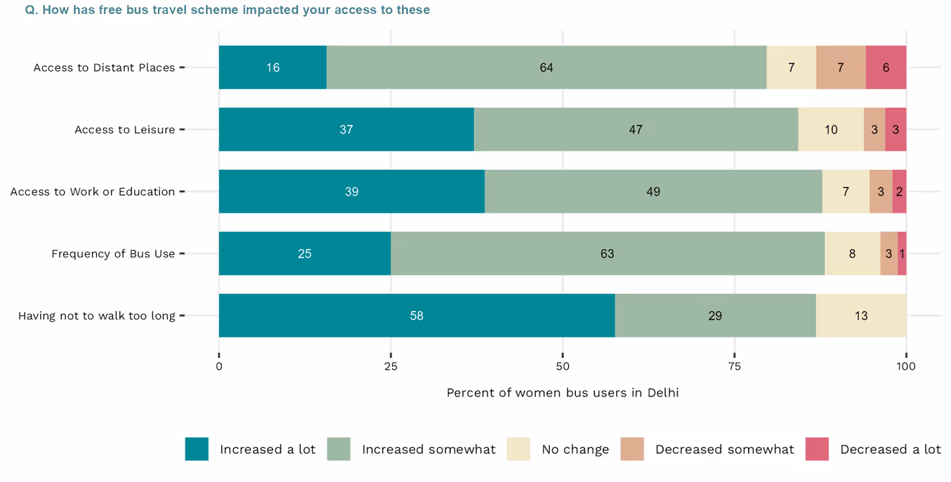 Unlike domicile restrictions put in the ‘zero ticket’ schemes in Karnataka and Telangana, Delhi’s scheme imposes no distance limits or eligibility restrictions, fostering greater inclusivity. As the scheme marks five years, it prompts questions about its broader impact on systemic gender inequalities such as access to work and education opportunities and patriarchal culture in public spaces. We studied the scheme's role in shaping women’s mobility and its contribution to creating more equitable and inclusive urban spaces in Delhi.
