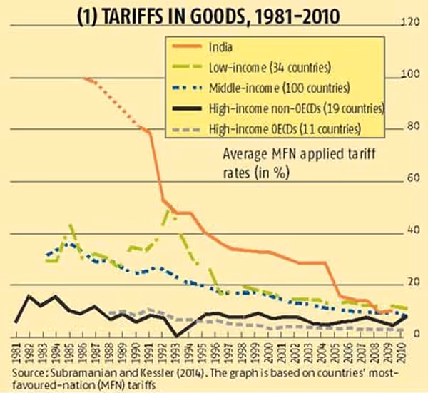 So, when India´s trading partners complain about the restrictiveness of the country´s trade regime, they are both right and wrong. It is closed in trade policy terms but open in terms of trade outcomes. Joan Robinson probably had some lofty, metaphysical conception when she observed that everything and its opposite are true about India. That observation applies more mundanely to India´s trade regime too.