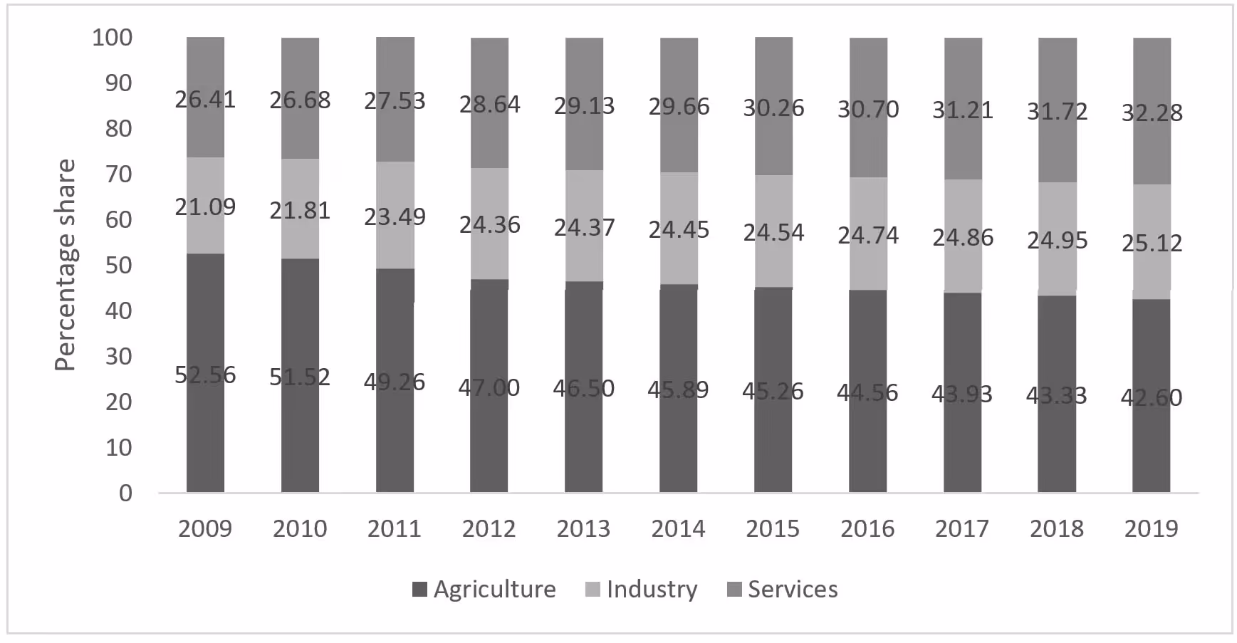 Figure 1. Distribution of India’s workforce across sectors from 2009-2019