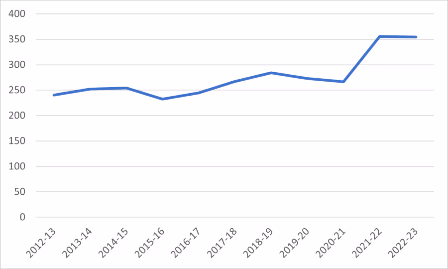 Figure 2. India’s total non-oil exports, 2012-13 to 2022-23 (in billion US$)