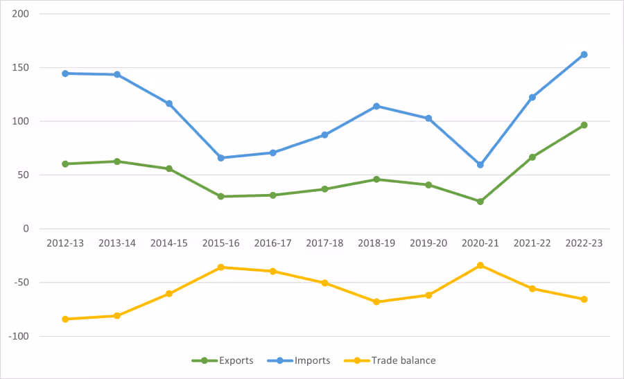 Figure 1. India’s overall oil trade, 2012-13 to 2022-23 (in billion US$)