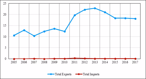 Figure 1. India’s trade in apparels with Japan (2005-2017)